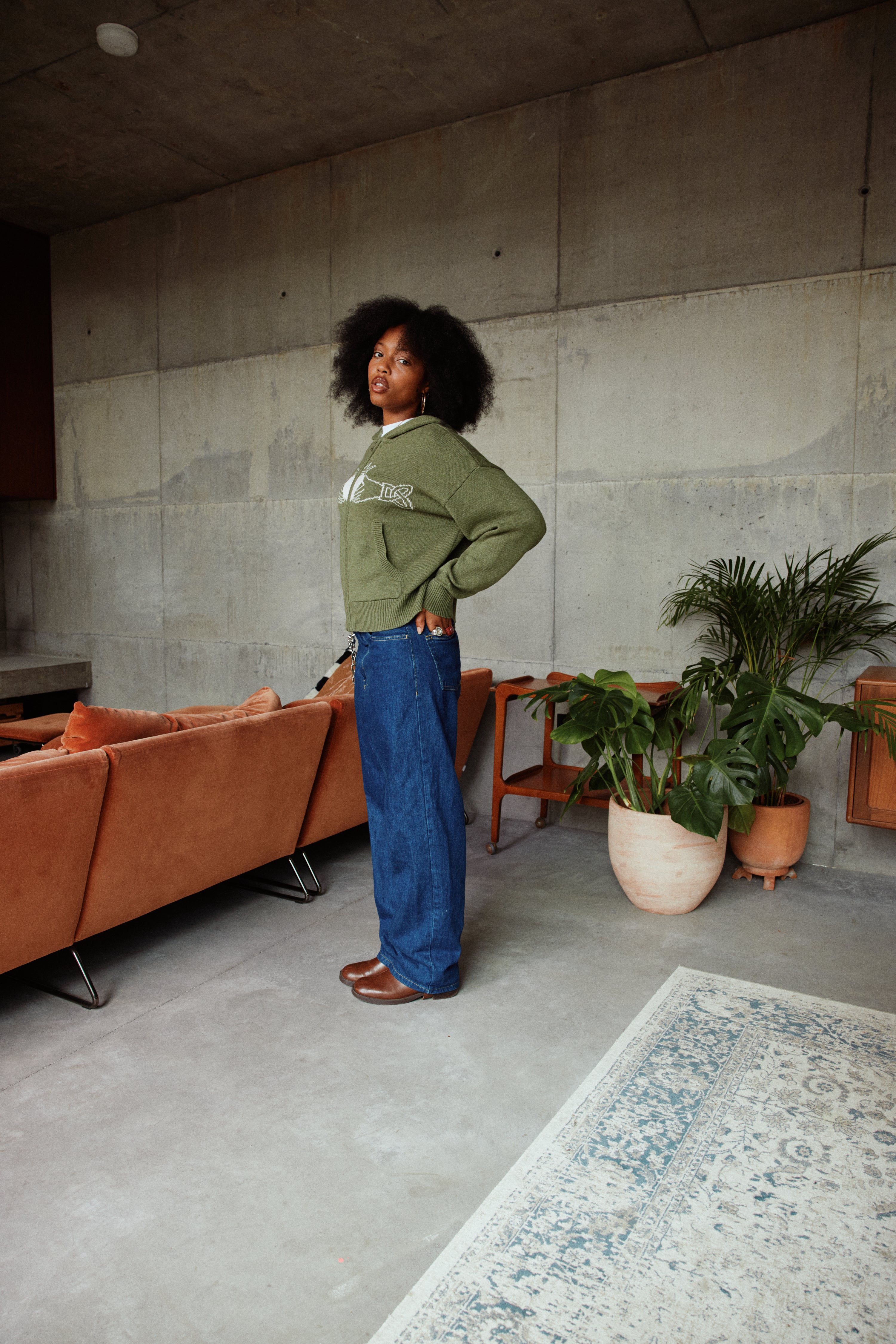 Boxy oversized fit. Size down for tighter fit, size up for further oversized fit. See size guide below.